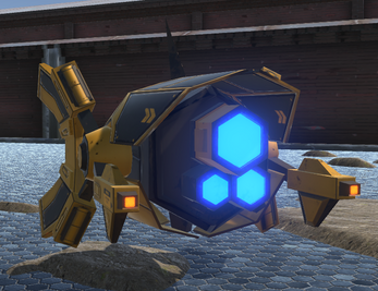 A mining drone travels around the map from mineral to mineral, collecting resources for the player. These resources allow the player to build towers and strengthen defenses against incoming enemies.